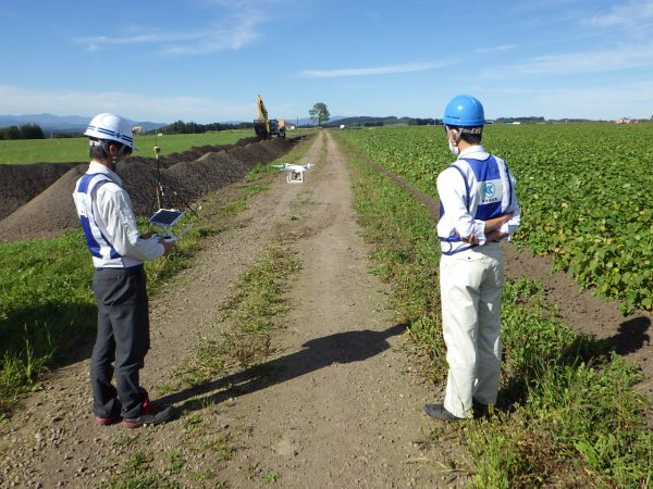 令和4年度 帯広工業高等学校の環境土木科就業体験(インターンシップ)を実施しました 2022.10.06 弊社ではインターンシップの受け入れを実施しており、今年度は令和4年9月7日(水)~9月9日(金)の3日間、帯広工業高等学校環境土木科2年生1名を受け入れました。土木工事についての講座や、道路改良工事・農地整備工事・治山工事・海岸工事の4現場で様々な就業体験をしていただきました。 <高さの測定> <GPSによる測量> <ドローン活用> <GPSによる測量> <施工管理(写真)>