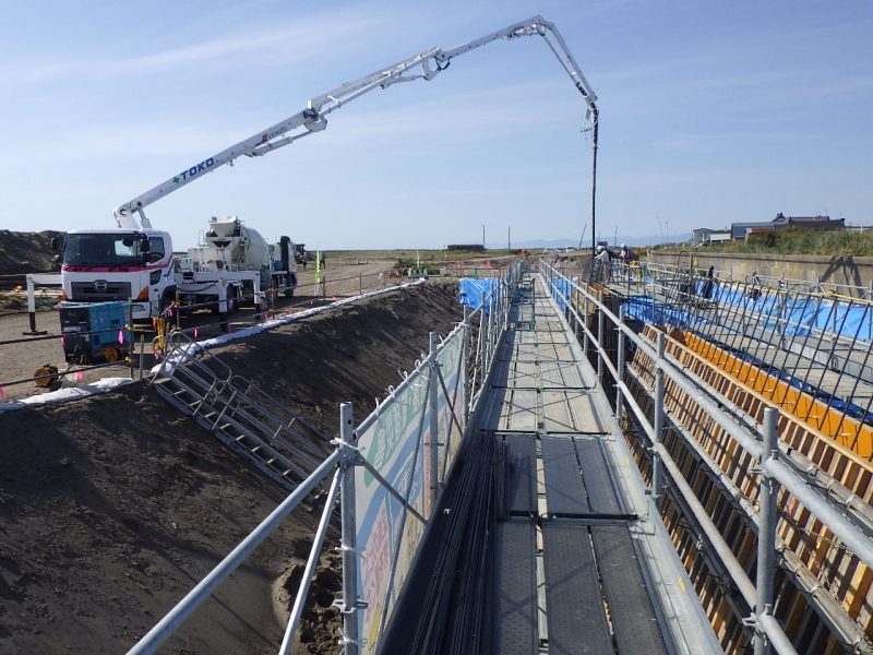 施工中 本体工(場所打擁壁)コンクリート打設状況